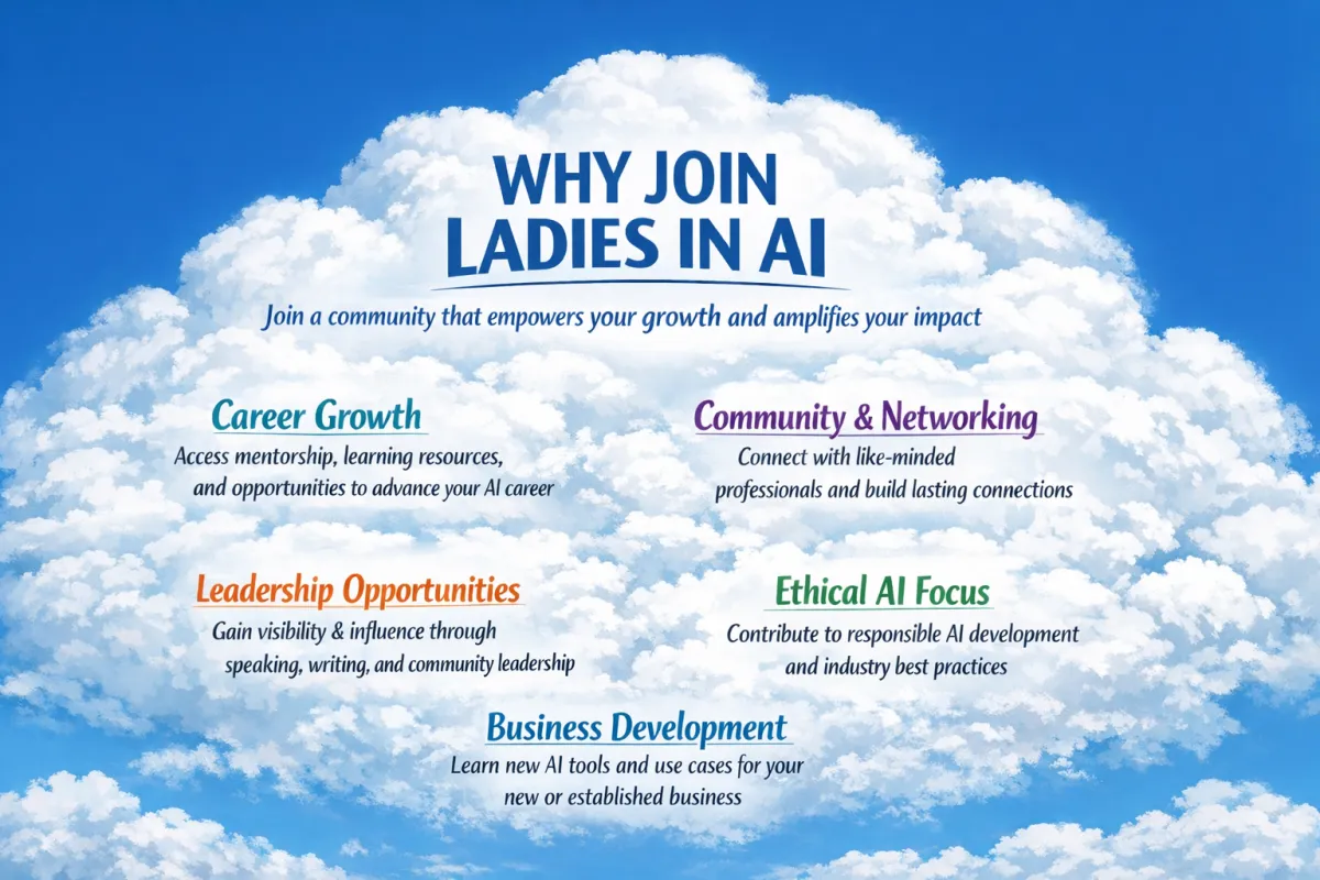 Ladies in AI is a professional community for women building, leading, and innovating in artificial intelligence. We provide education, mentorship, industry collaboration, and real-world opportunities that help our members grow careers, launch businesses, and influence the future of responsible AI.